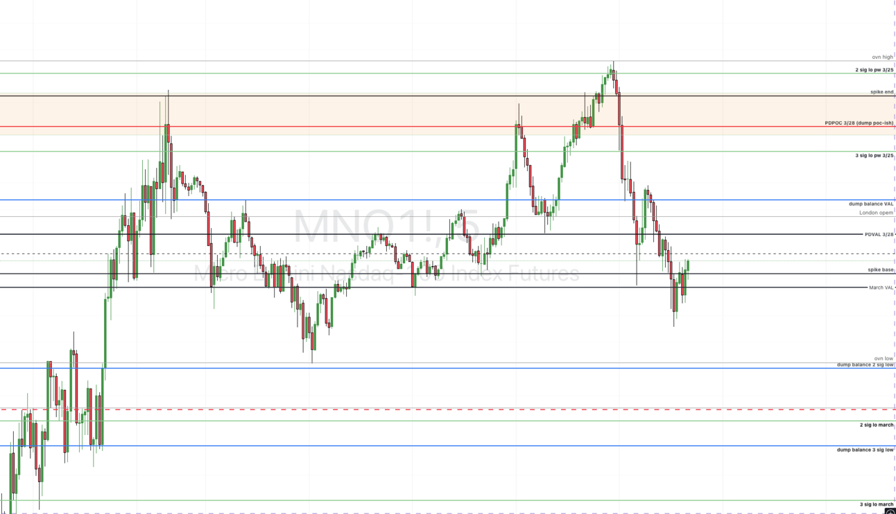 The spike end happens to correspond to a prior dump’s local Value Area High (i’ve marked that hole value zone in orange) so yes, if she can work her way through that, and stay through it then it’s good news. So far she’s peeked above and failed, so that ain’t so bullish yet. But the actual session will give us the truth of the matter.