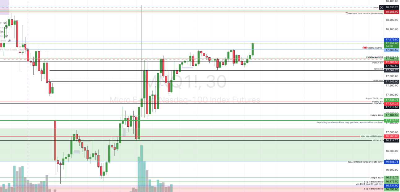 if they hold above 17887.5, they’re aiming back all the way up at 18.288. On the way, some important places for potential targets/pullbacks: 18040.5, 18106.25