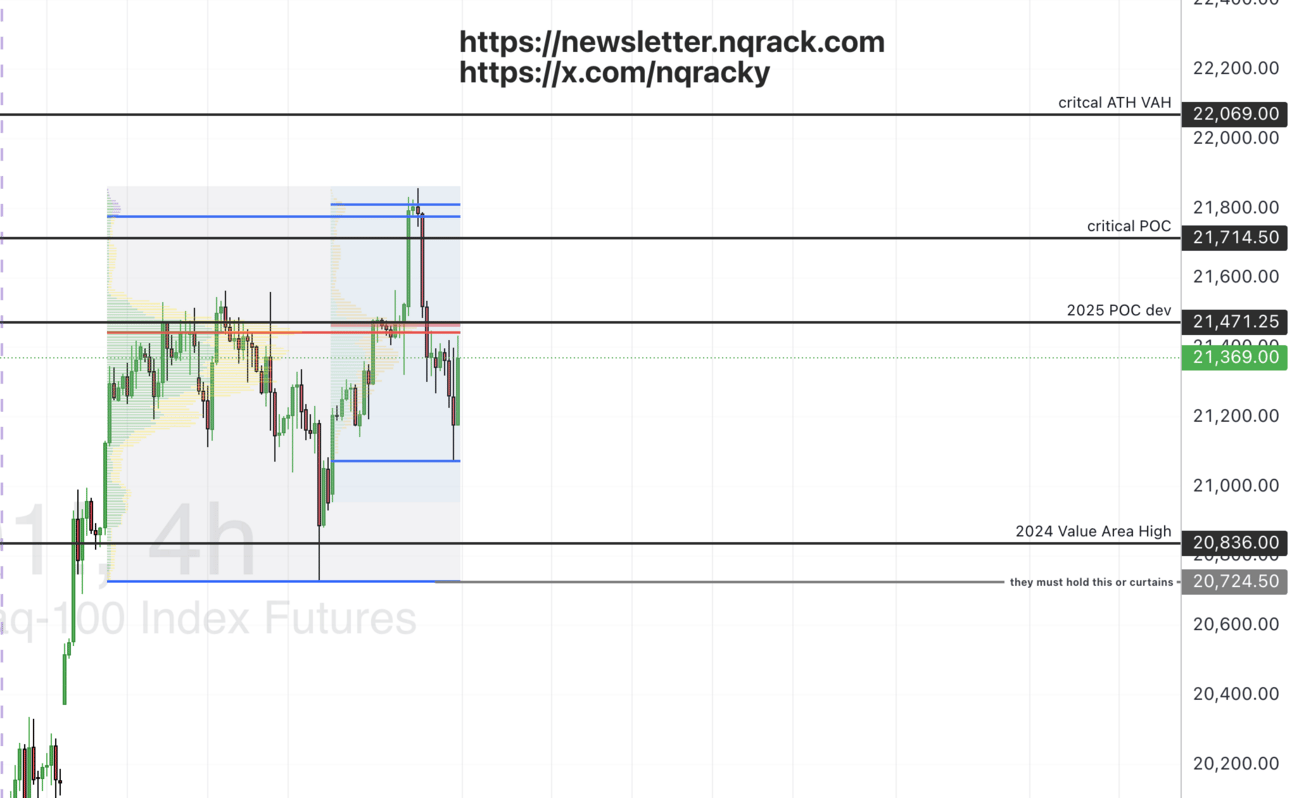 Decided to take the Memorial Day week off of the newsletter, well, just because. The kids are out of school; we’re adjusting to new schedules, I hadn’t been getting up as early (but need to). So let’s go! The market is the market. we are still trying to push up as much as possible, disaster has not struck yet. As long as we’re above the 2024 Value Area High, we’re not killing the tape just yet. BUT, we’re in the middle of the year already and 2025 has not started to make its own numbers, really. Currently, we are looking at nearly an inside year, if she can’t break out, “soon”.