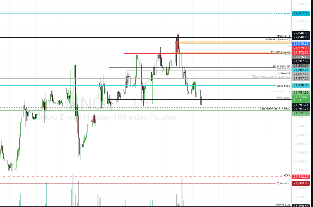 Above 21893.5 needed. opens door to 21972.5 but they‘ll need to break through 21907.5 and 21915.5 first. then they can try to reclaim 21979, 22018.25. | Below losing 21761.75 is opening the door to the overnight low which is close to the “real” number, 21711.5. she doesn’t really want to lose this as there’s a long way to fall to 21412.25. |
