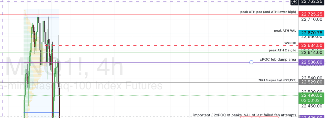 Welp, $QQQ ( ▼ 0.32% ) is trading premarket at all time highs. Never short a dull tape. That suspicious and waning volume only seems to contribute to a carefree float back up to the top. $MNQ_F ( 0.0% ) and $NQ_F ( 0.0% ) have not reached their heights just yet, however, and are working their way through February’s dump and lower low area.