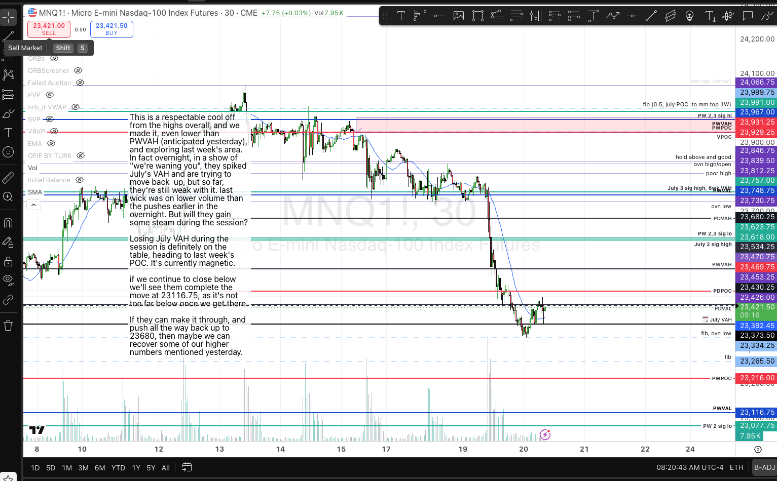 Losing July VAH during the session is definitely on the table, heading to last week's POC. It's currently magnetic.