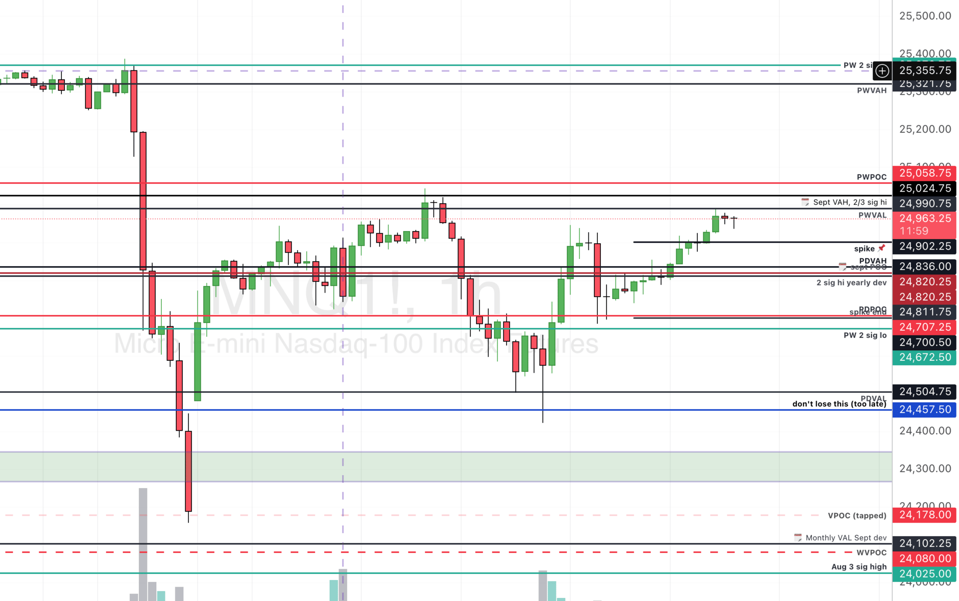 Above holding above 24902 and 24990 wants to be breached, then the BFRN at 25000, a stones throw from 25058.75 25321 likely today? not sure, but it’s the next major target, via 25160, 25191.25. | Below if we can;t breach 24990, then 24902.25. cracking that is a danger zone, as we can break down from the zone they clawed back up from, starting at 24836, and could fall to 24707.25 and below. |