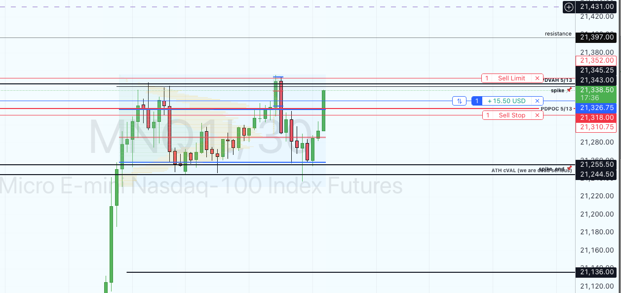 i kept my trade in view — trailing one from a 6 contract position earlier after a few add-ons