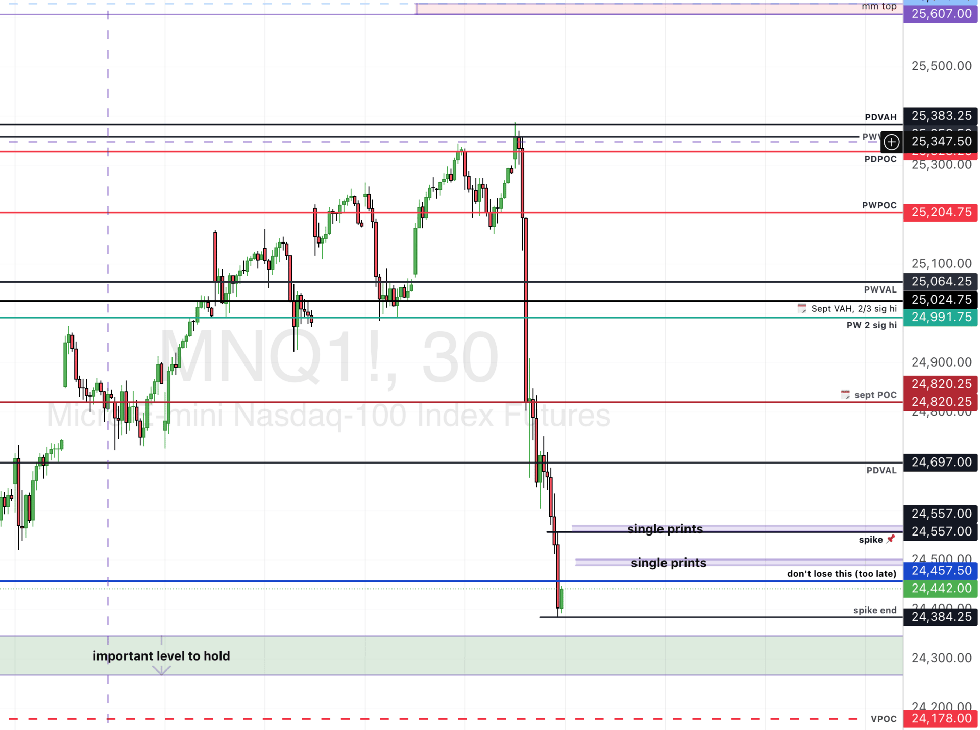 Then consolidated a tiny bit, but did not recover, but shooting down even further in our ālittle hā pattern. Then, they did one of the dirtiest deeds of all. Nearly an hour after NY session close, she sharply broke below what previously, for me at least, had been a āfull stack longā level. Liquidated below three key levels. halting at a long awaited VPOC.